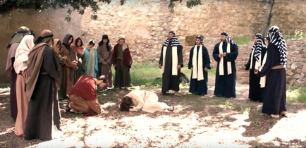 Čitajući dalje evanđelje, saznajemo kako su svi ljudi otišli, a ostali su Isus i bludnica sami. Isus je s pravom ostao, On je bez grijeha, On jedini može baciti kamen na nju. Ali On to ne čini, ne osuđuje grješnicu, iako je imao puno pravo na to. On je milosrdan i rado prašta svima koji to zatraže.
