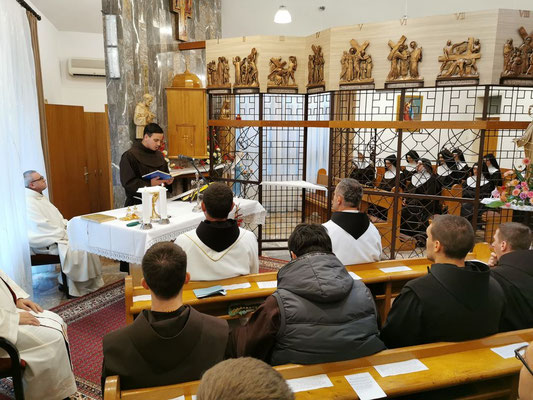 Nakon obilaska knjižnice, muzeja i samostanske crkve na red je došao samostan sestara klarisa u Brestovskom gdje su novaci zajedno sa sestrama sudjelovali na svetoj misi koju je predslavio fra Ivan Miklenić, meštar trsatskih novaka. Nakon mise sestre su u pomoćnoj dvorani ugostile novake te ukratko prikazale povijest svoga dolaska iz Splita u Brestovsko.