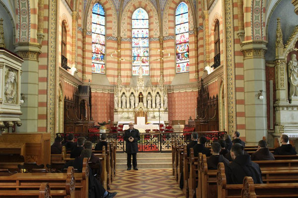 Točno u podne novake i njihove odgojitelje u biskupskoj rezidenciji primio je uzoriti nadbiskup Vinko kardinal Puljić. Kardinal je ohrabrio mlade franjevce da budu čvrsti i ustrajni na putu dobra te da budu pravi sinovi svetoga Franje.